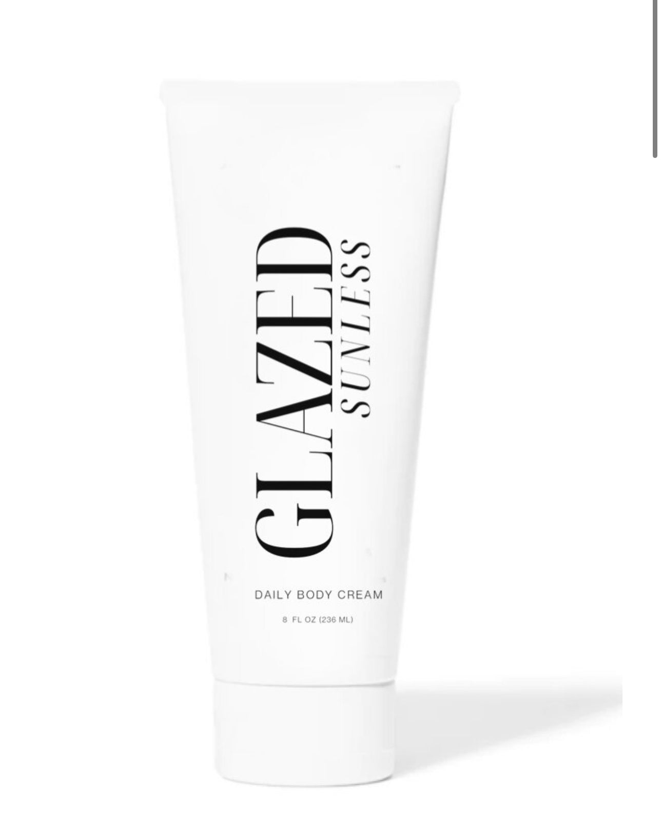Glazed Sunless Body Cream- the daily dose of hydration and moisture that your skin craves. Full of impactful spray tan safe ingredients designed to not only prolong the life of a sunless tan- but leave the skin visibly soft, smooth, and nourished when used as a daily body lotion.