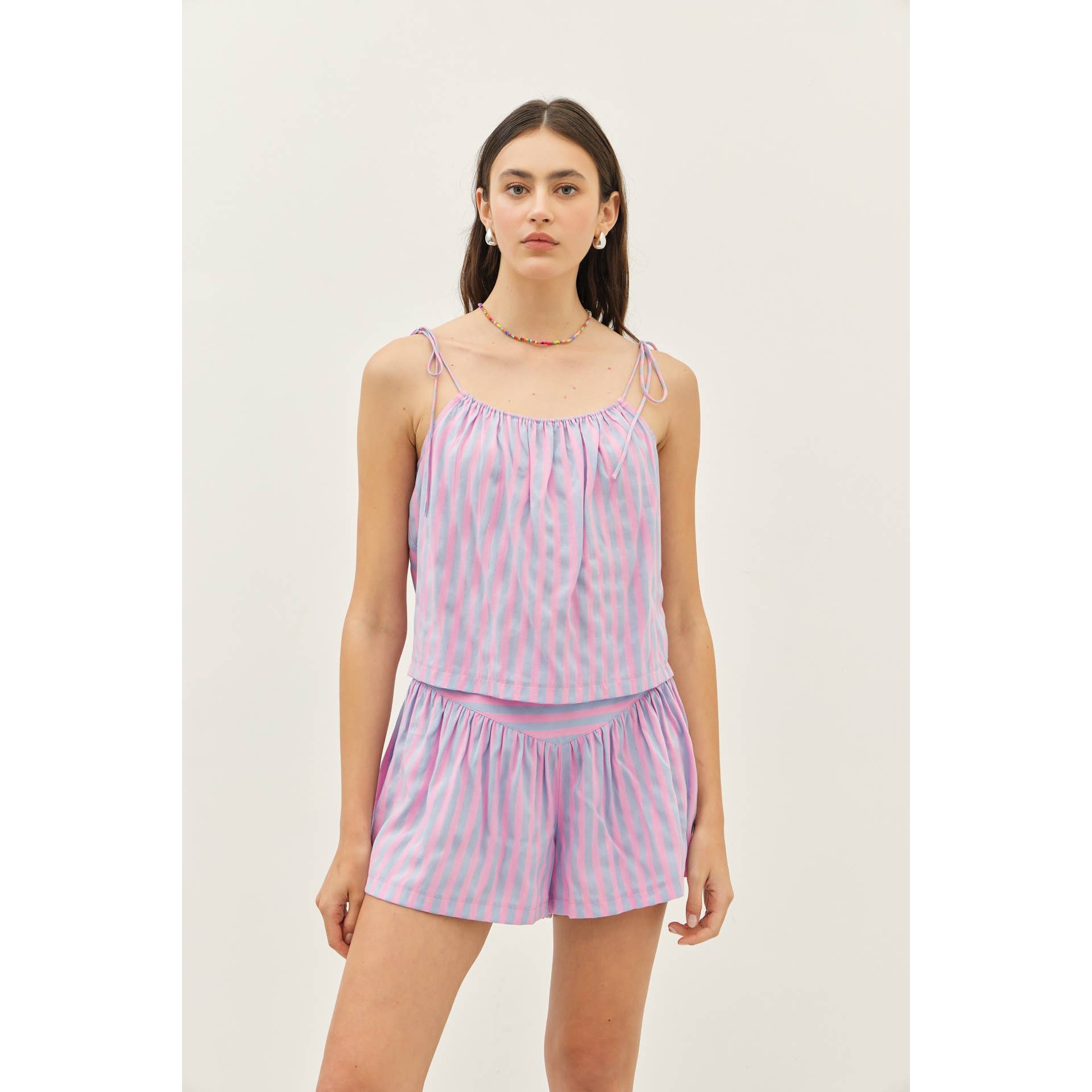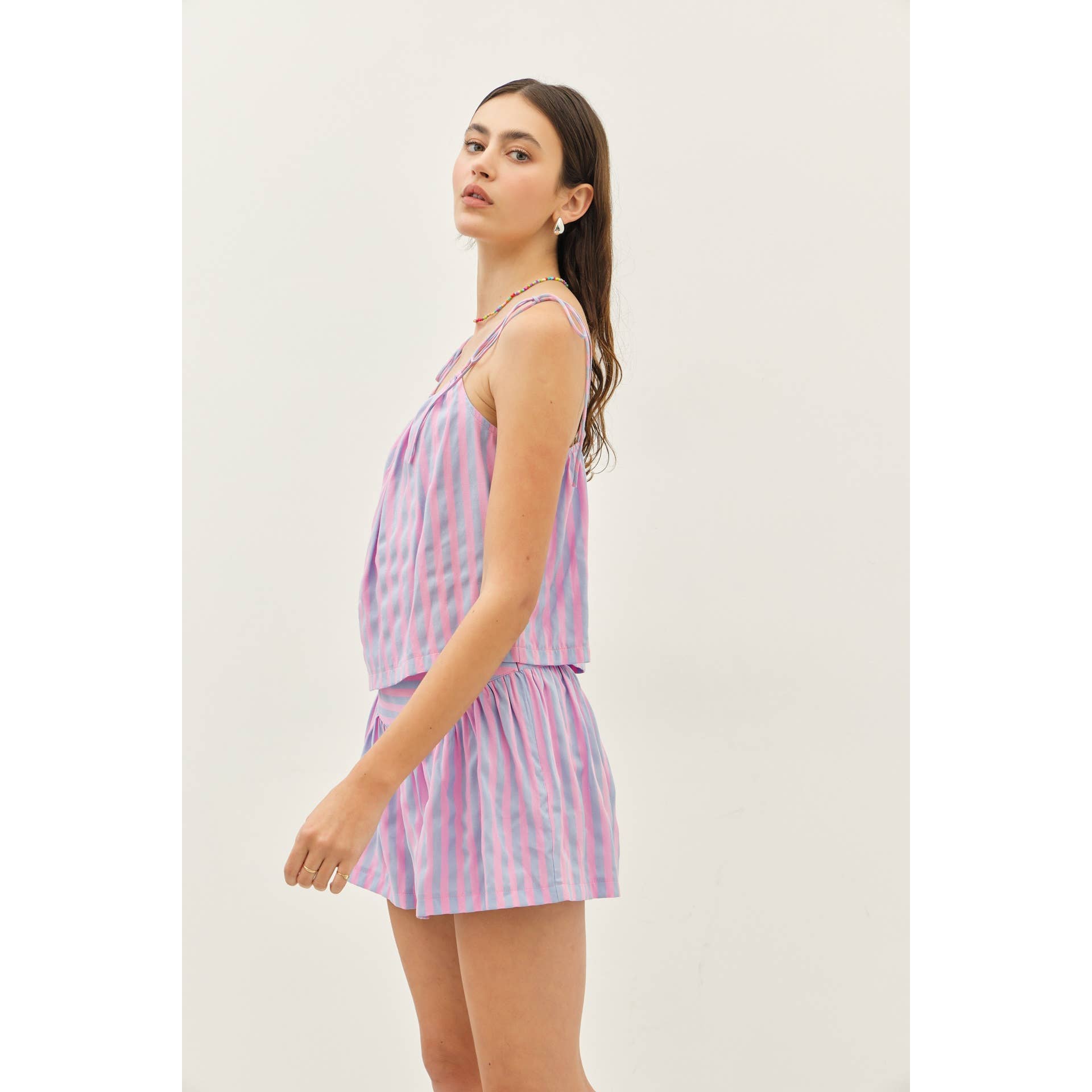 idem ditto - MULTI-COLOR STRIPE BASQUE WAIST SHORTS