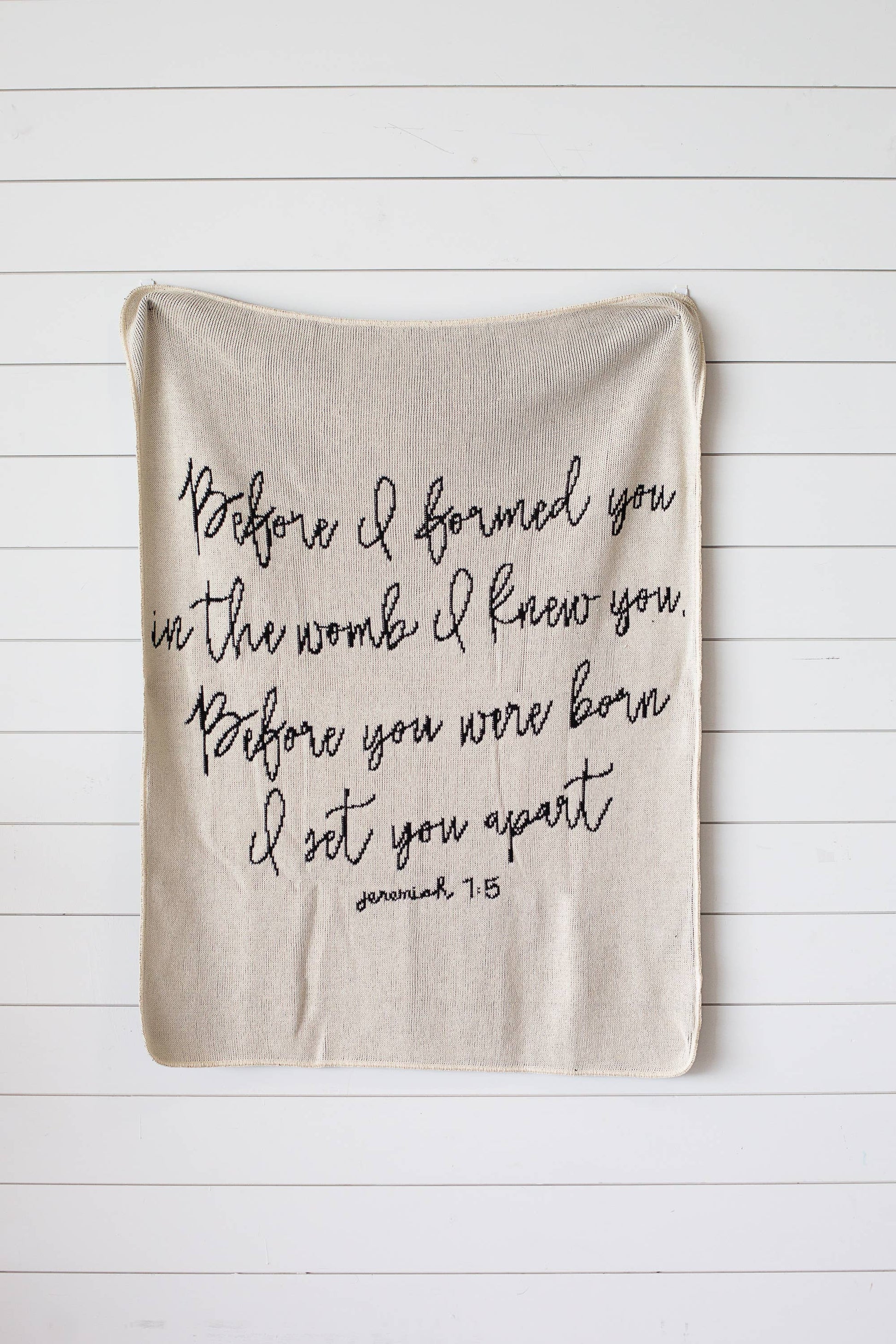 Modern Burlap - Made in the USA | Jeremiah 1:5 Throw Blanket | Black