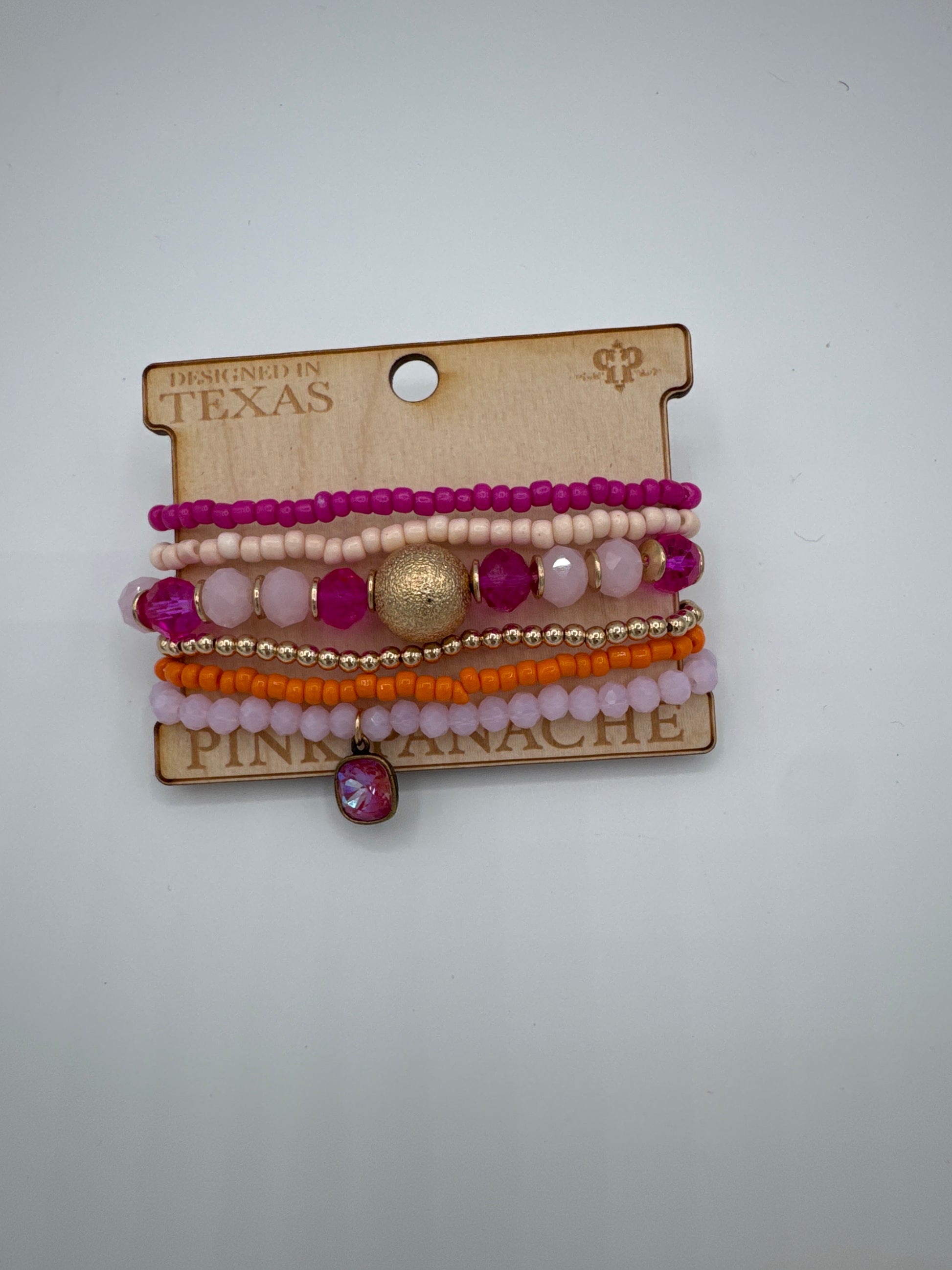 Pink and gold bead bracelet set Austrian crystal