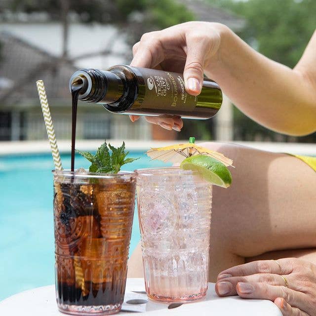 Our new Reserve Bourbon Barrel Balsamic Vinegar was created by aging our traditional balsamic vinegar in Bourbon barrels from Garrison Brothers Distillery in Hye, Texas. It is incredibly versatile with a full, rich taste and subtle spiciness. Use it in a marinade for grilled meat, use it to dress a salad, or drizzle it over your favorite ice cream. We know you will love it as much as we do. Pairs with just about everything.