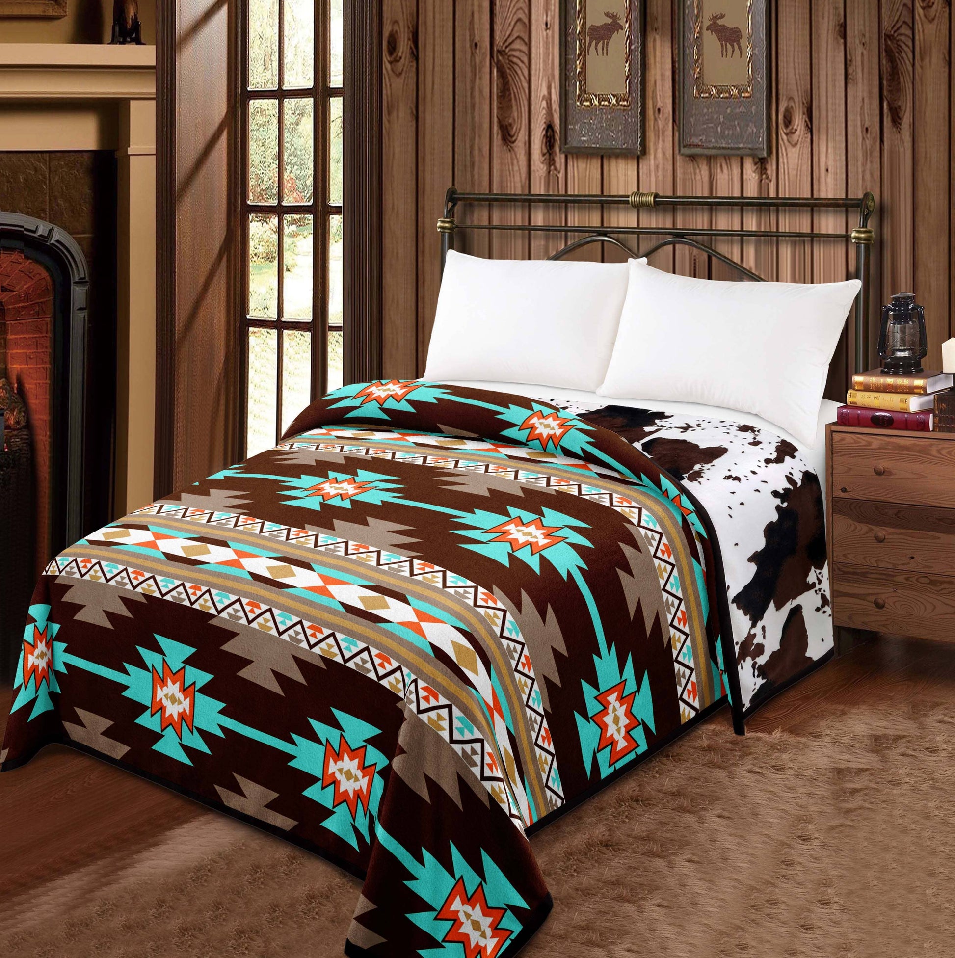 Western Linens - Brown Aztec - Cowprint Mia Reversible 2 Design Blanket